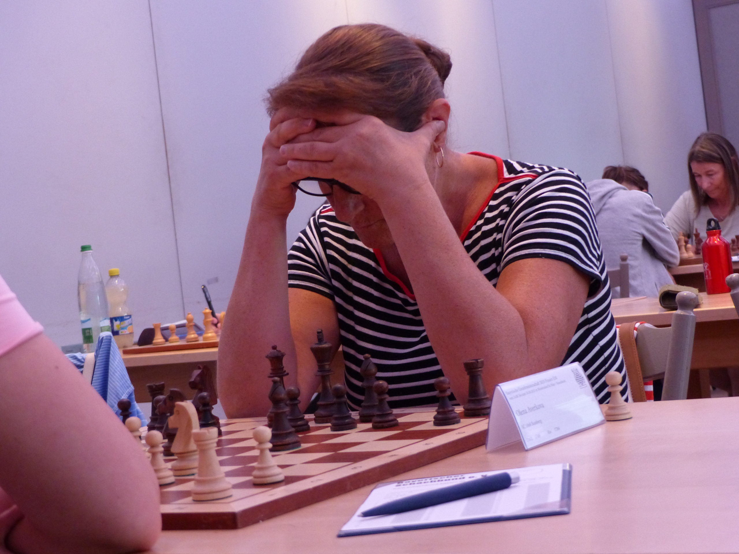 Berrak Albayrak und Olha Ratushna hatten nach zwei Stunden immer noch alle Bauern auf dem Brett und erst 20 ZĂĽge gespielt, standen aber lange ausgeglichen. Mit der knapper werdenden Zeit konnte sich die favorisierte Berrak am Ende durchsetzen.