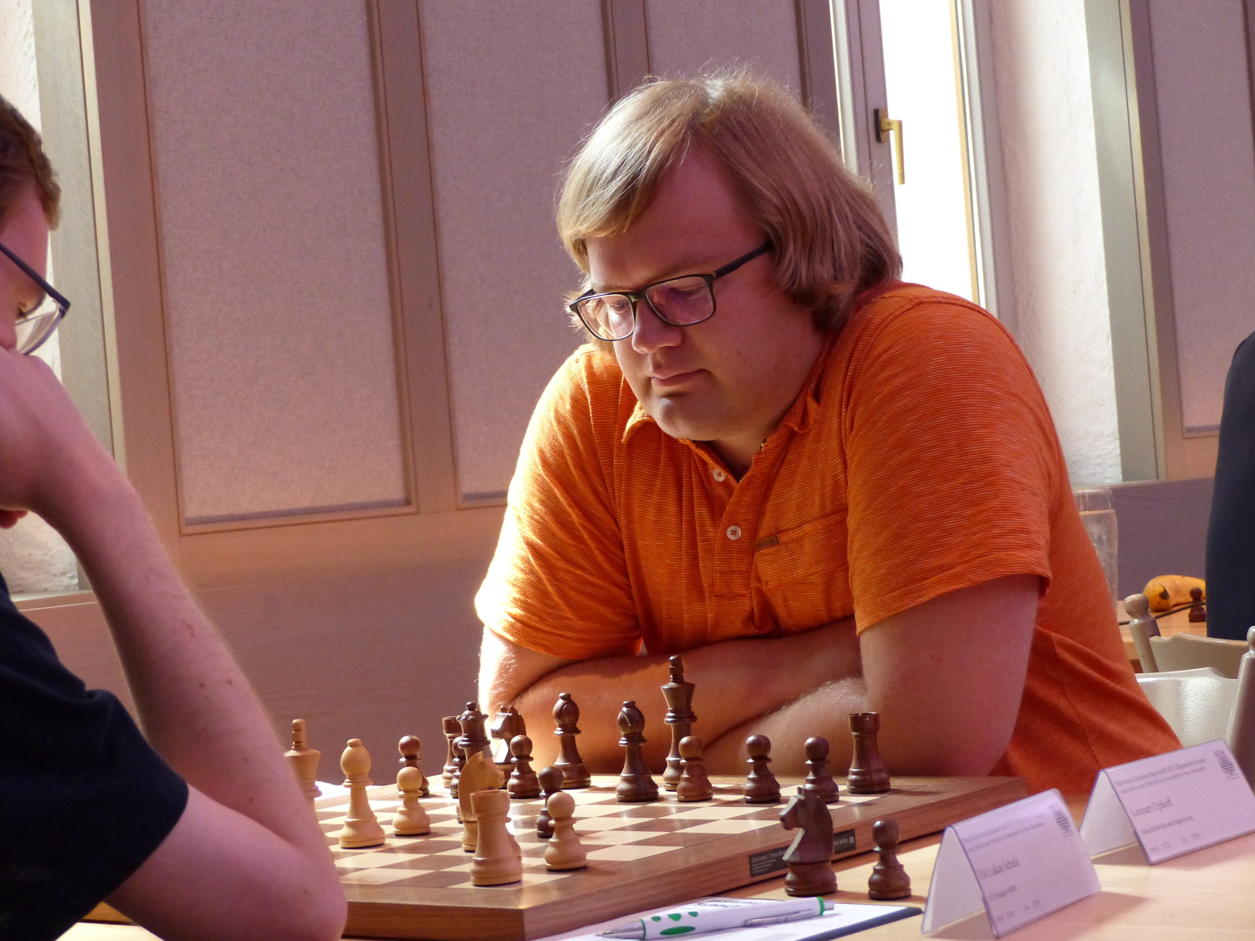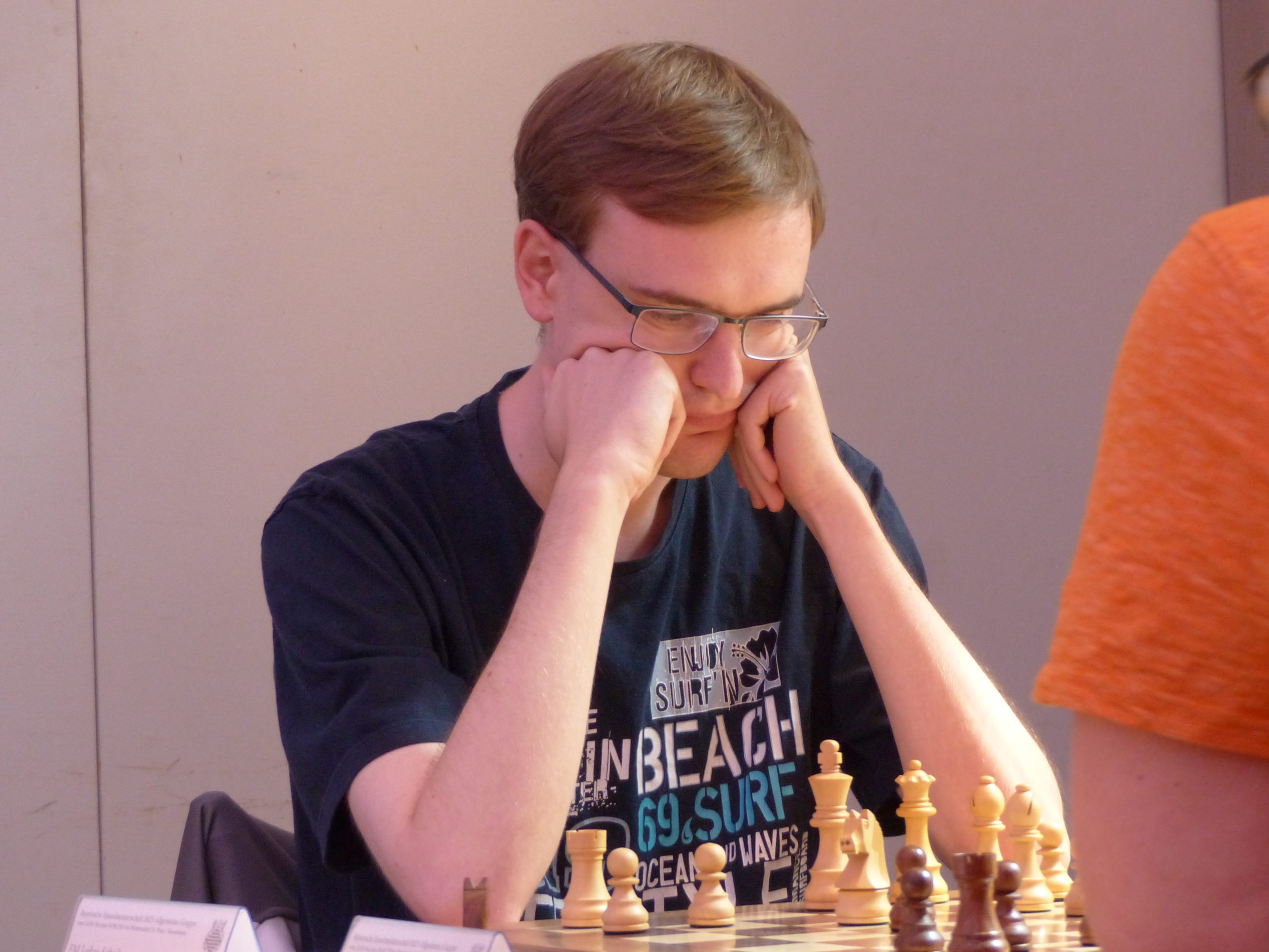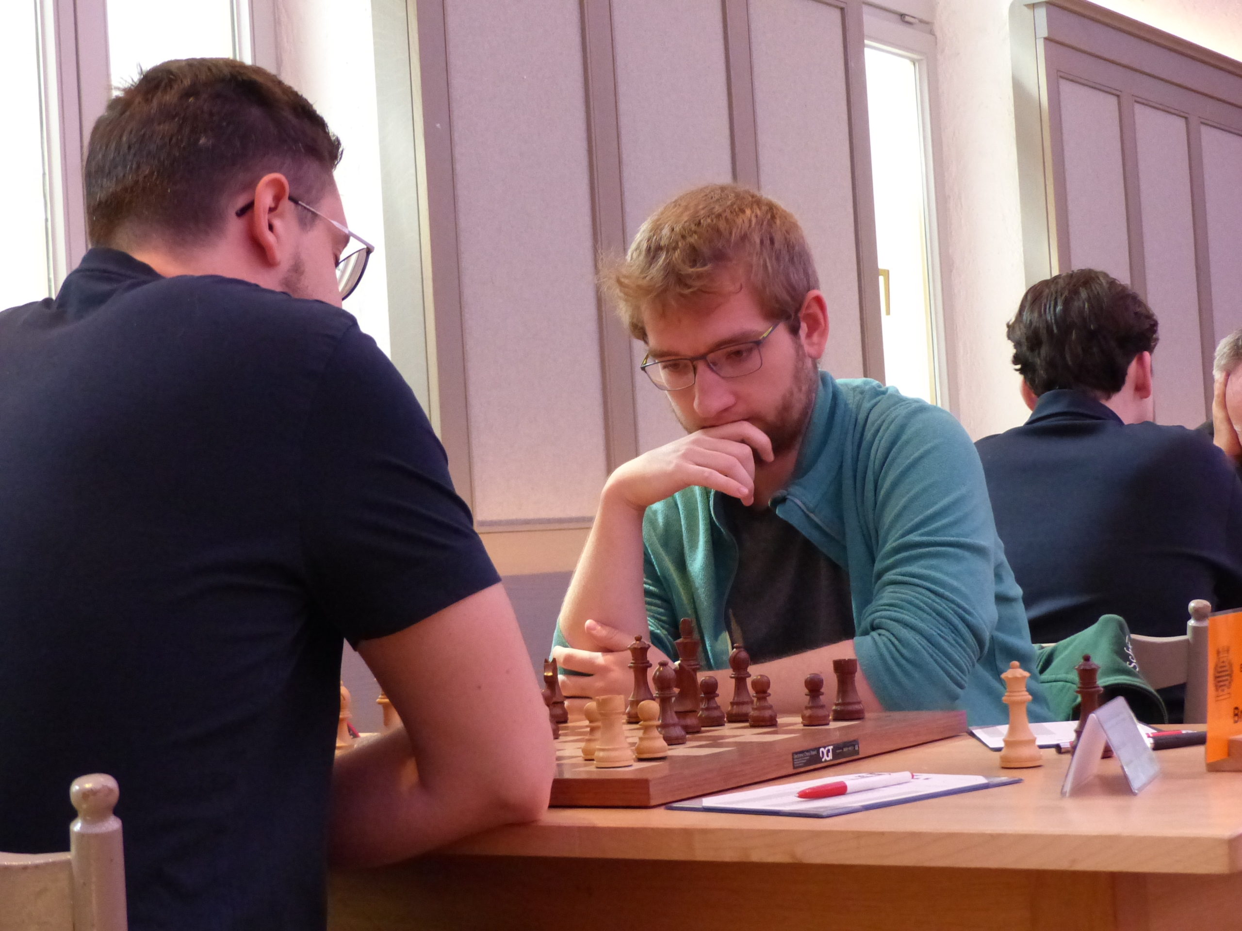 Am ersten Brett bekam es Spitzenreiter FM Lukas Schulz, der bis dahin komplett verlustpunktfrei geblieben war, mit Lennart Uphoff zu tun. Lange sah es so aus, als könne der Herausforderer vom SC Bavaria Regensburg das Ding gewinnen, hatte sowohl Raum- als auch Materialvorteil. Allerdings driftete die Partie in eine Stellung ab, in der der Topscorer der bayerischen Oberliga vor der Pforte zur Umwandlung einen Doppelbauern verpasst bekam und fortan feststeckte. Stattdessen musste er aufpassen, dass der FM vom SC Erlangen nicht seinerseits einen Bauern durchbrachte. Die beiden kämpften bis zum bitteren Ende, bis nur noch zwei Könige auf dem Brett standen. Damit musste der Spitzenreiter seinen ersten halben Punkt im Turnier abschreiben.